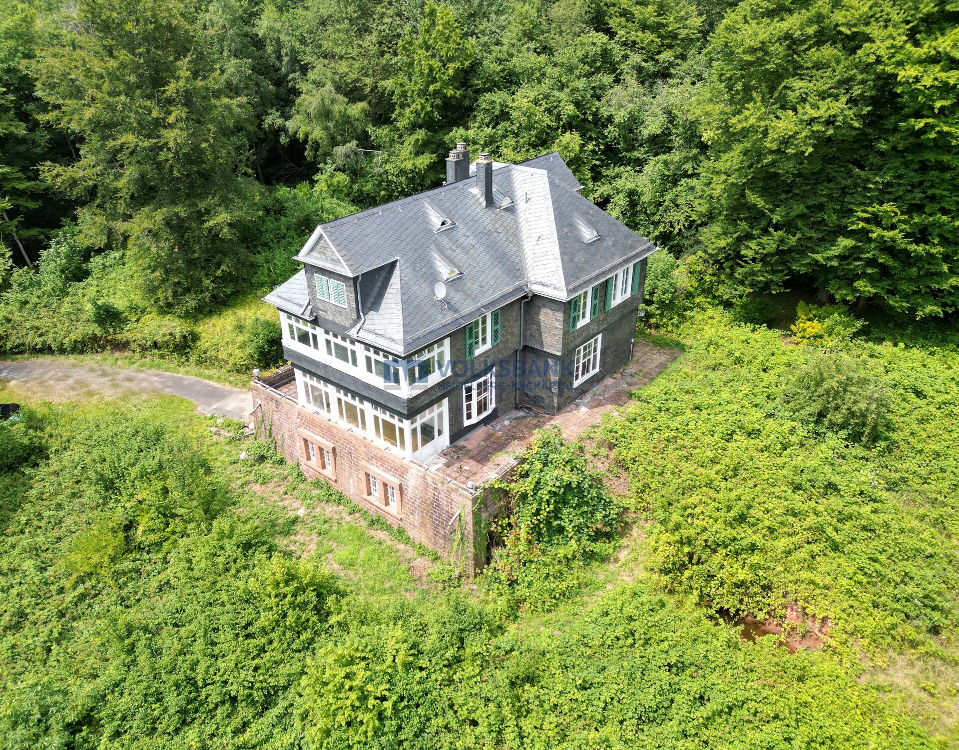 Bei dem Anwesen Kohlhof 9 handelt es sich um eine denkmalgeschützte Villa mit großzügigem Garten. Das vollständig verschieferte Wohnhaus besteht aus zwei Vollgeschossen mit Walmdach, Zwerchhäusern und Fledermausgauben und wurde 1914 auf einer großflächigen, unterkellerten Sandsteinterrasse über kreuzförmigem Grundriss errichtet. Es ist ein typischer Vertreter des Reformstils, in Material und Gestaltung wurde es nach dem Vorbild traditionsreicher Wohnhäuser des Bergischen Landes, der Heimat des Bauherrn, errichtet. Auf der Südseite befindet sich ein haushoher, ursprünglich offener Verandavorbau, welcher im Zuge einer Sanierung im Jahr 1986 mit Fenstern geschlossen wurde. Der Unterbau ist aus hammerrechten Sandsteinquadern mit Zwil-lingsfenstern in monumental wirkenden, leicht rustizierten Gewänden gestaltet. Im Erdgeschoss befindet sich das große Speisezimmer mit Zugang zur Veranda und Ausblick auf den Talgrund, die übrigen Räume im Erdgeschoss und Obergeschoss sind links und rechts der zentralen Diele mit der Treppe angeordnet. Das ausgebaute Dachgeschoss ist aufgrund eines fehlenden zweiten Rettungsweges baurechtlich aktuell nur als Lagerfläche nutzbar. Im Haus sind Garderobeneinbauten, Holzverkleidungen in Fluren und im Treppenhaus, eine Holztreppe, Wandschränke und zwei Kachelöfen erhalten.